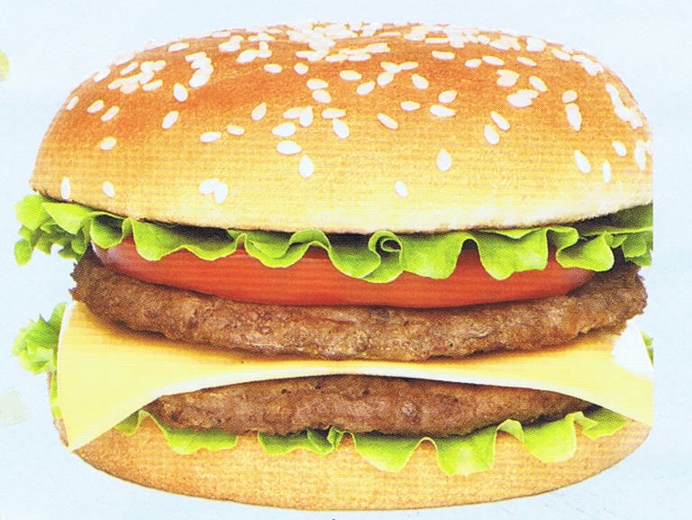 100 g Rindfleisch mit Salat, Cheddar Cheese, Tomaten, Ananas, American Sauce |